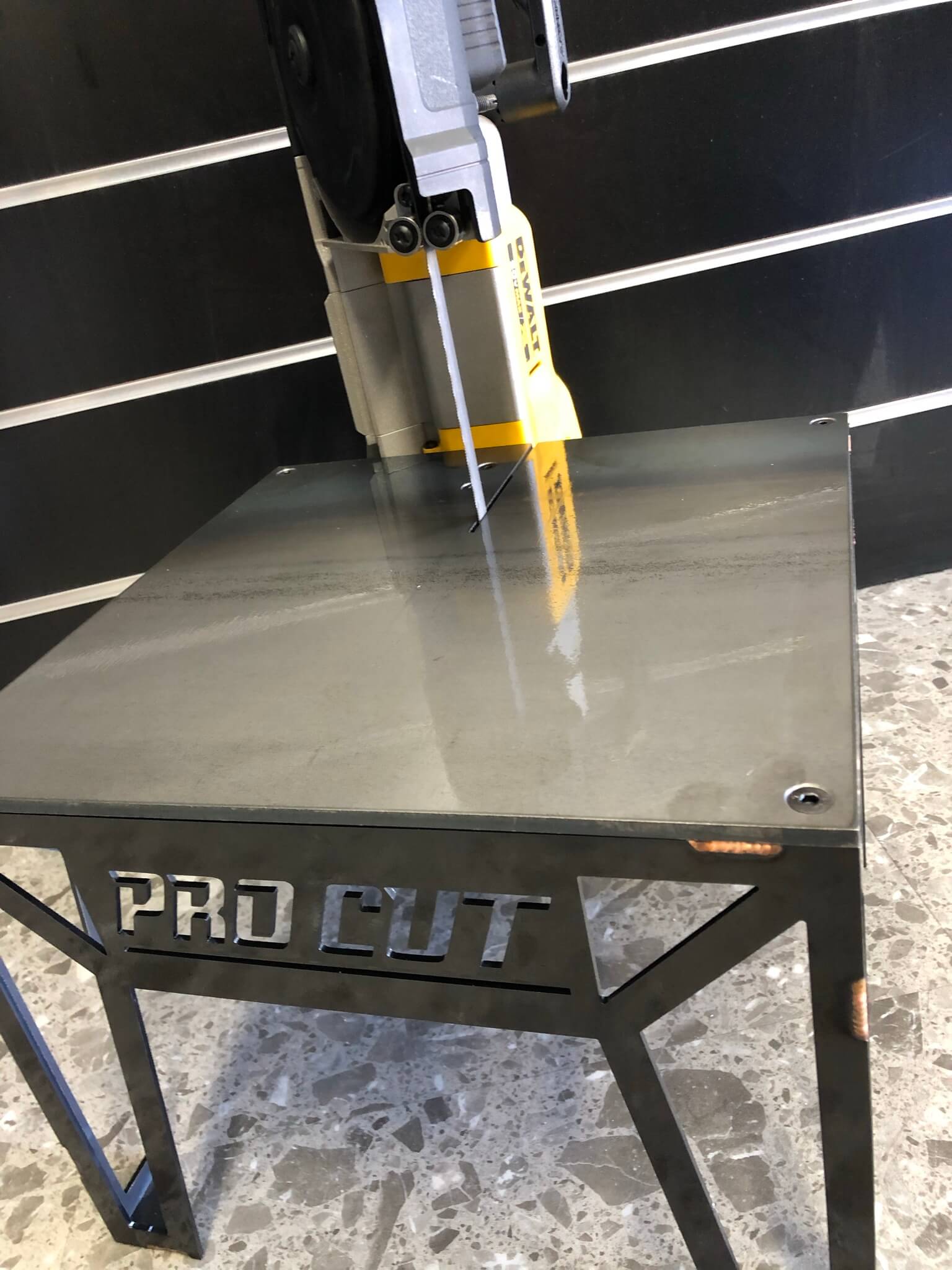Cutting a tube bend with a grinder is old school! Never look back with a portable bandsaw bolted to our Pro Cut bandsaw table. For a lot of fabricators, a large commercial vertical bandsaw is just not feasible whether it be room or cost. Not anymore! Convert your portable bandsaw into an extremely handy vertical bandsaw that is still portable and can easily be stored away when not in use. Portable bandsaws are perfect as they have a relatively high cutting rpm and offer outstanding torque with a thin razor-sharp blade. Simply follow the cut line and you will be blown away with how quickly perfect square cuts can be made on tube bends. With minimal or no clean up required! Not only is this set up great for bends but all materials such as flat bar, flat sheet for cutting out brackets, Chrome moly tube and RHS. Go one further with our Pro Cut mitre tables and improve precision with the aid of a mitre gauge. Perform perfect square straight and any angles mitre cuts. Make Pro Cut apart of your tool collection today!